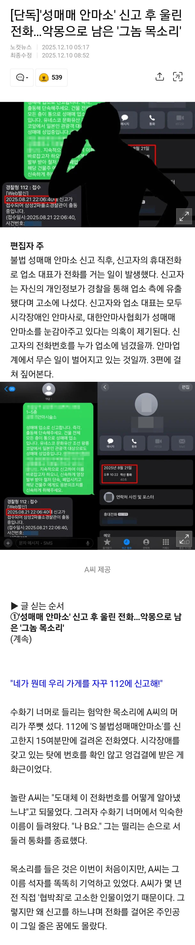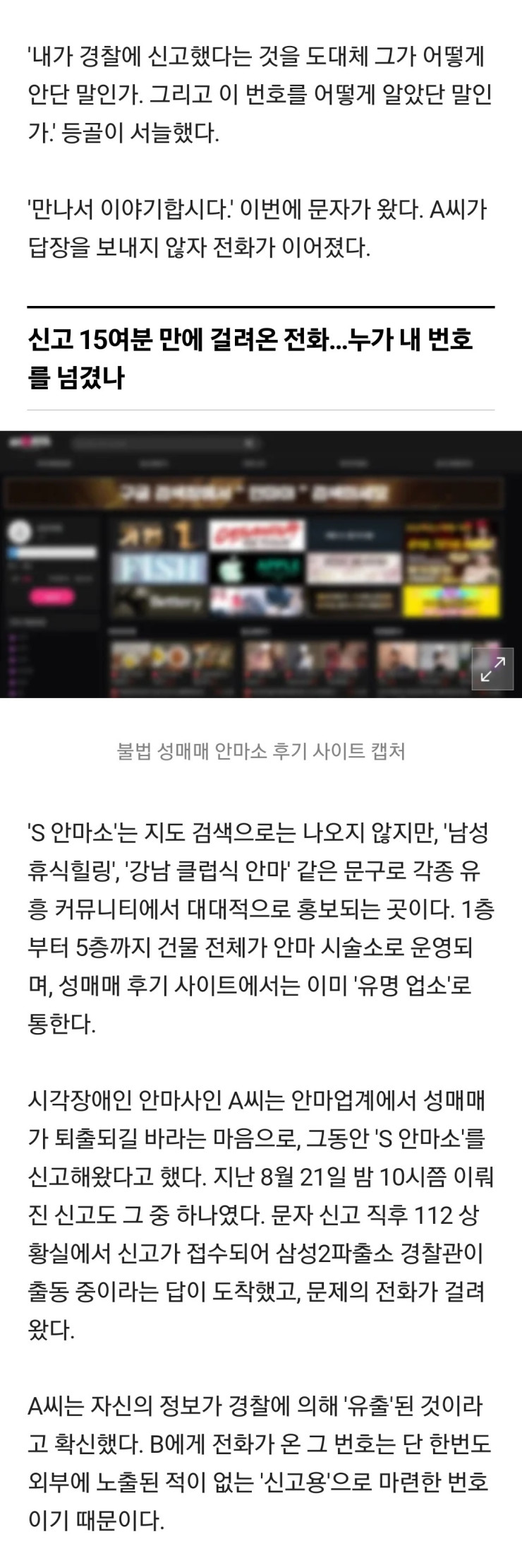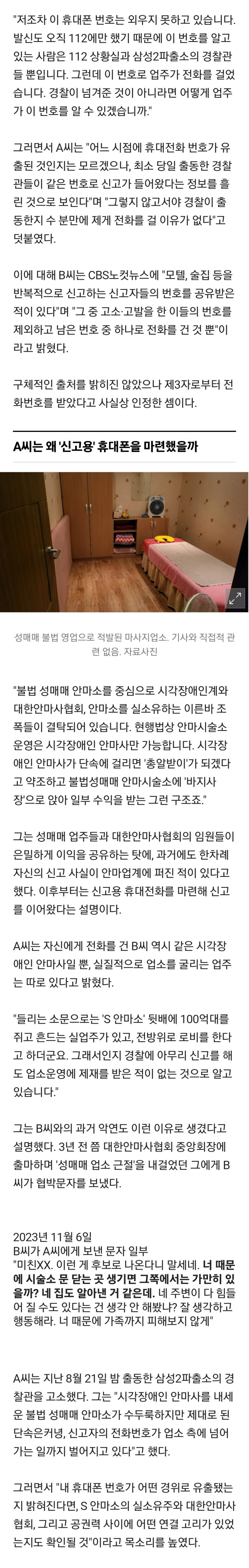 성매매 안마소 신고했는데 번호 유출된 사람