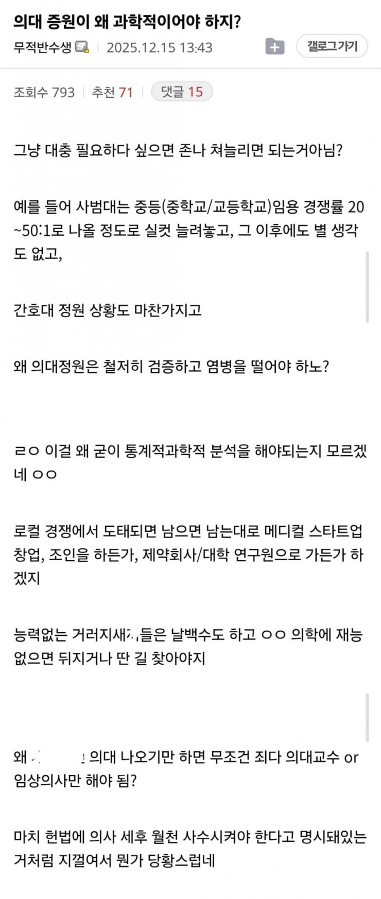 의대 증원이 왜 과학적이어야 하지?