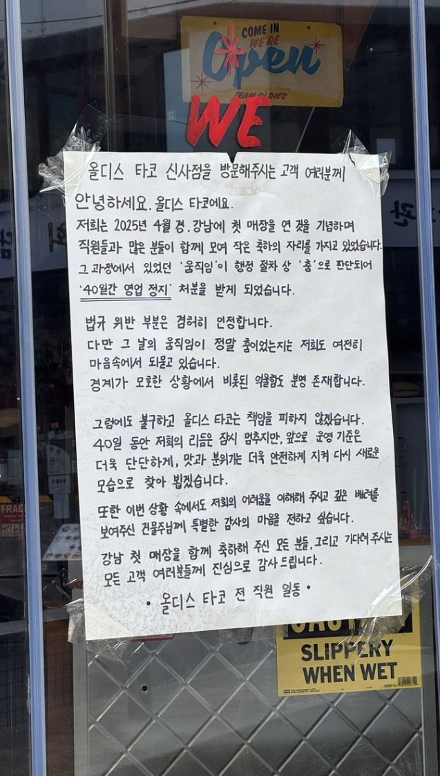 직원들 춤췄다고 영업 정지먹은 타코집 영상 뜸