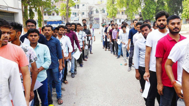 인도 오디샤주에서 8000명이 활주로에서 187명뽑는 공무원 시험을 치룸.