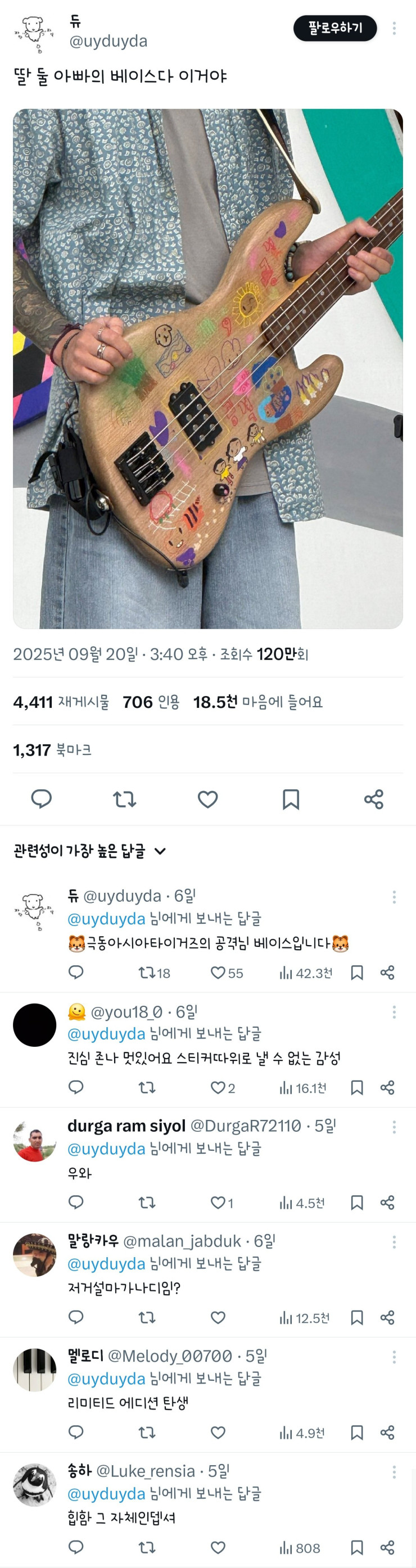 하루만에 트위터 맘찍 1.3만 넘은 인디밴드 베이스 상태