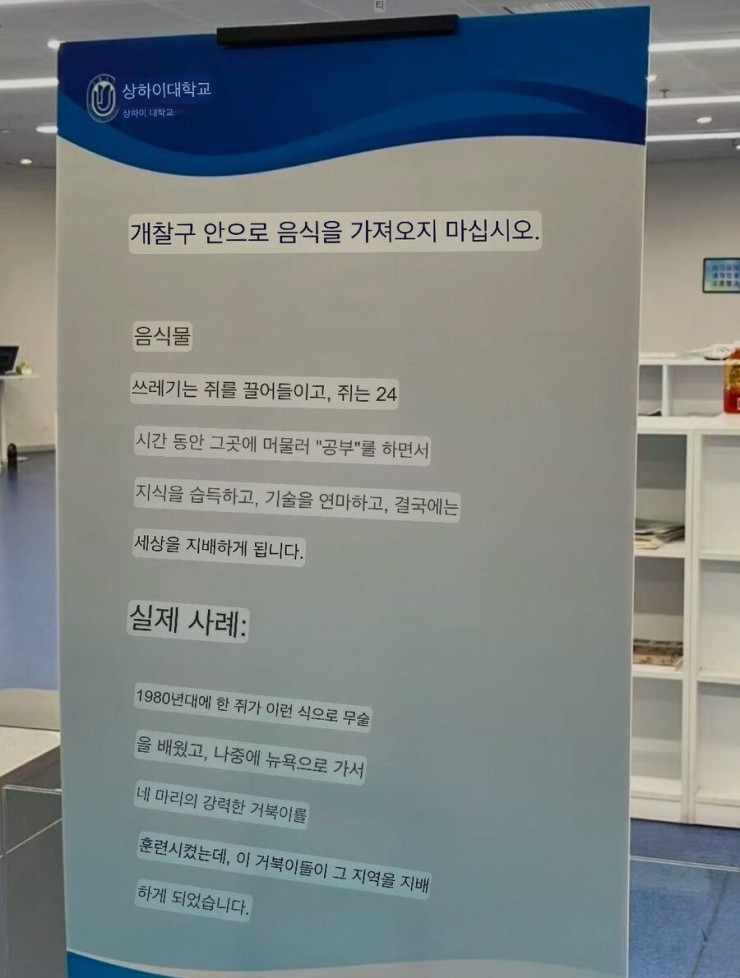 상하이 대학이 실제 사례를 바탕으로 만든 도서관 경고문구