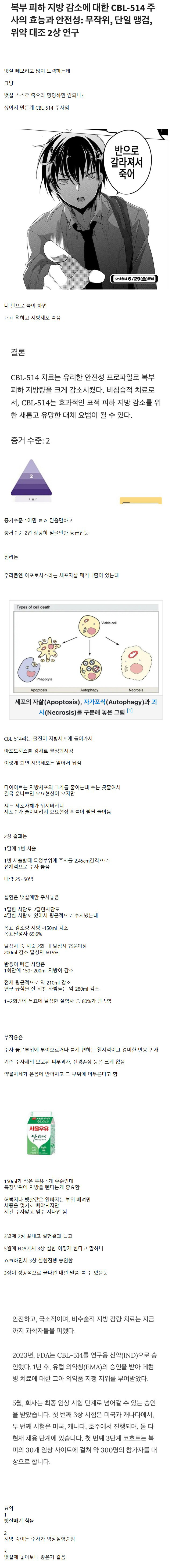 현재 뱃살빼는주사 2상 임상실험 결과 근황