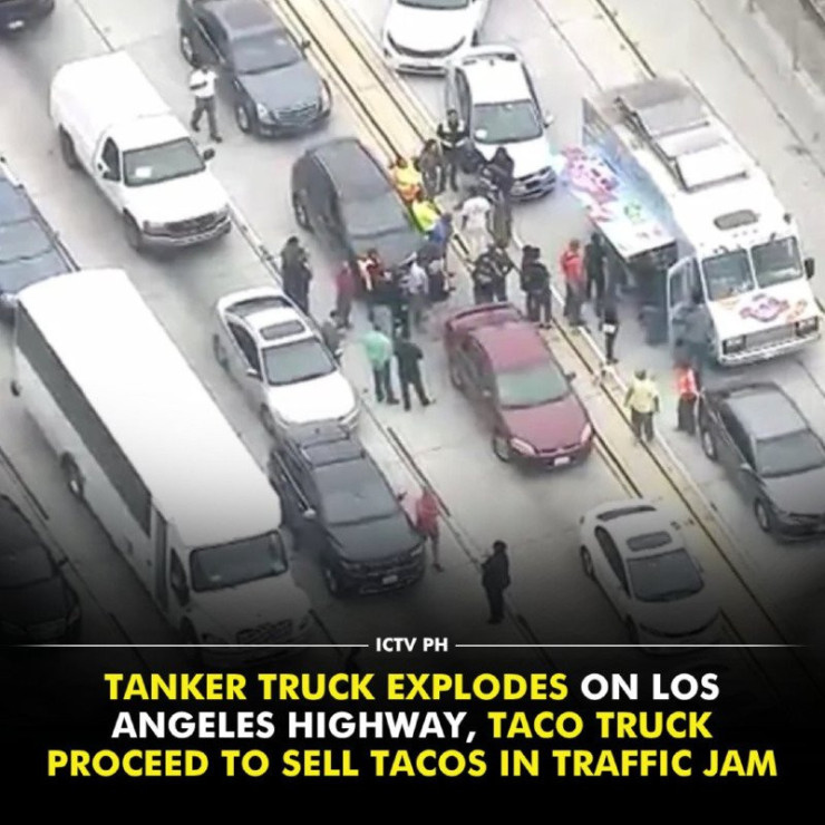 고속도로에서 사고(연료 트럭 폭발) 나서 차들이 못 움지기고 있으니까
