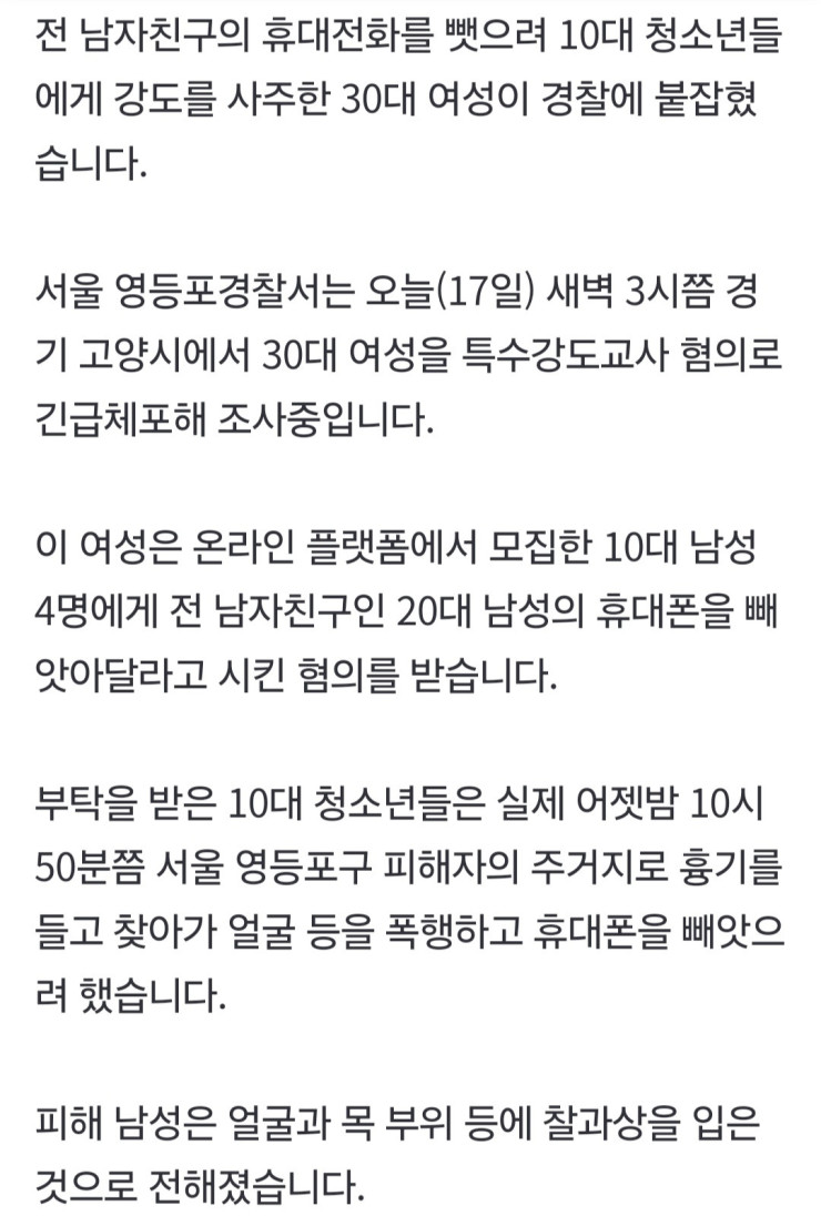 청소년에게 강도질 부탁한 30대 여성