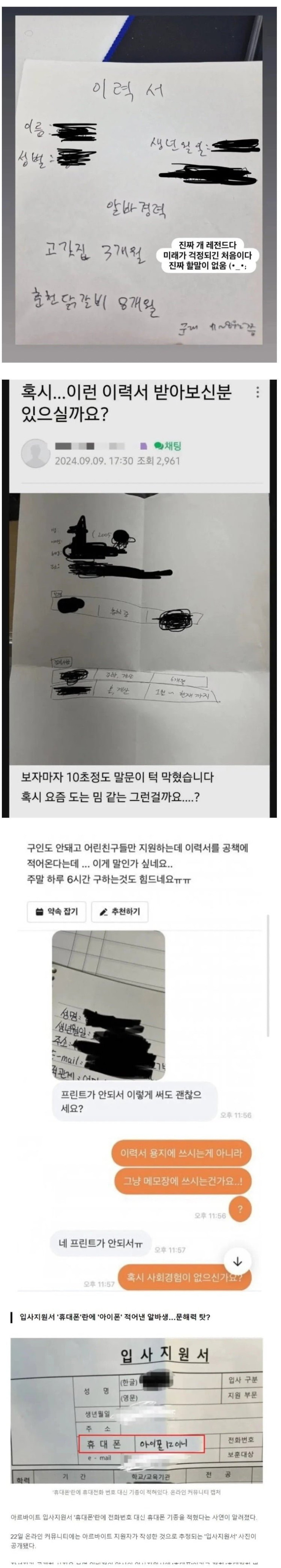 충격적인 요즘 이력서 모음