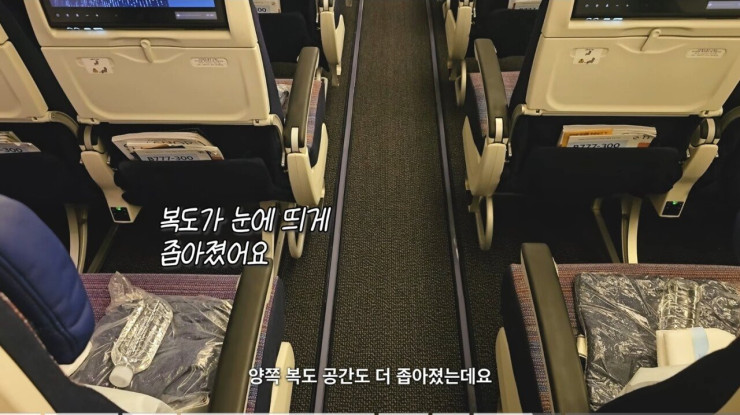 좌석은 늘려놨는데 기내 선반은 똑같아서 불편하다함. 복도도 좁아져서 불편