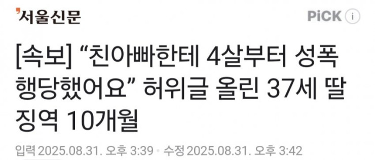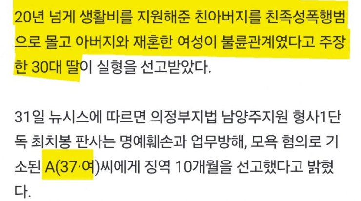친부에게 4살부터 성폭행 당했다고 허위글 올린 30대 징역