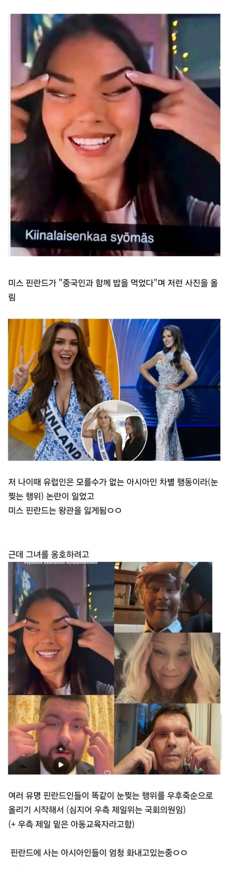 아시아인 조롱으로 논란이 난 미스 핀란드 + 옹호하는 핀란드인들