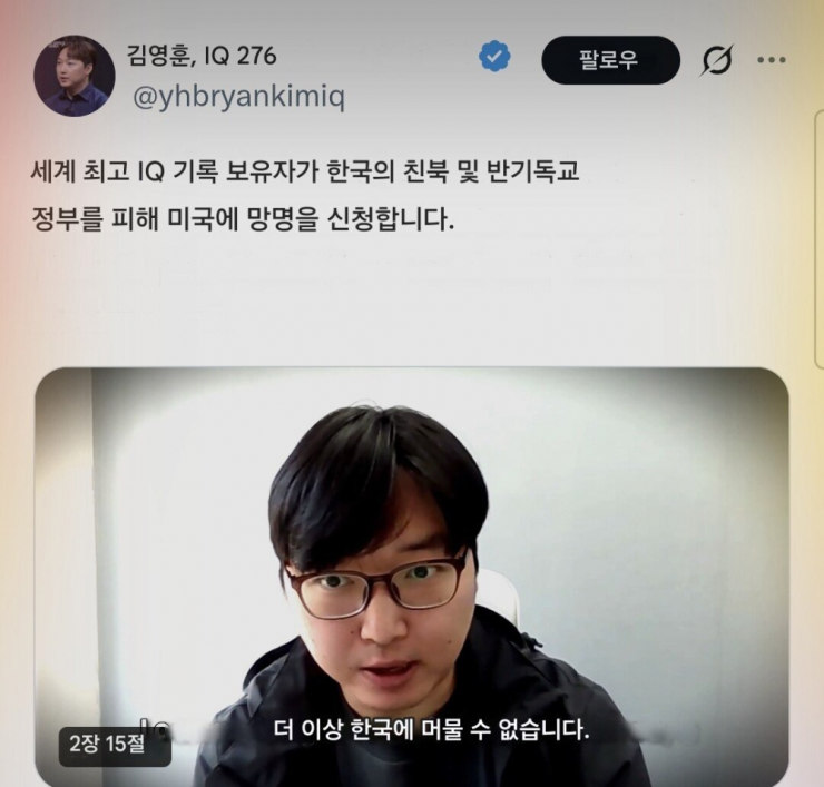 미국 망명 신청한 IQ 276 한국인에 대한 의문점