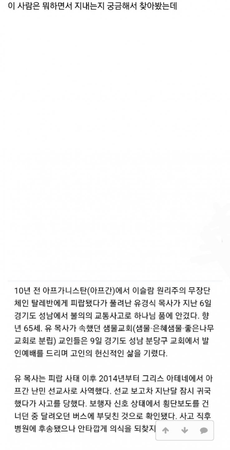 샘물교회 아프가니스탄 선교회 장로 근황