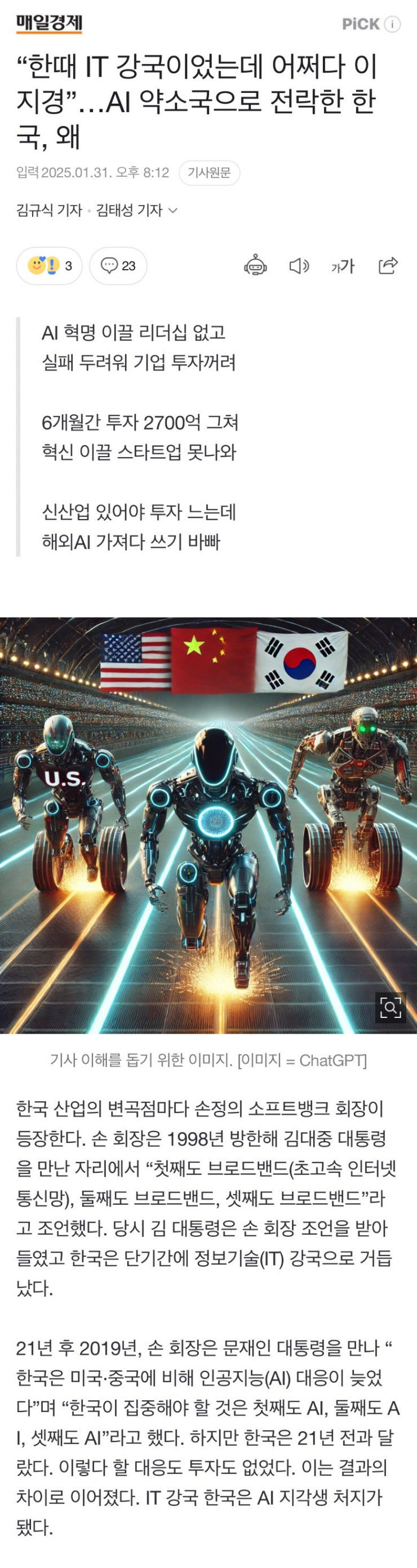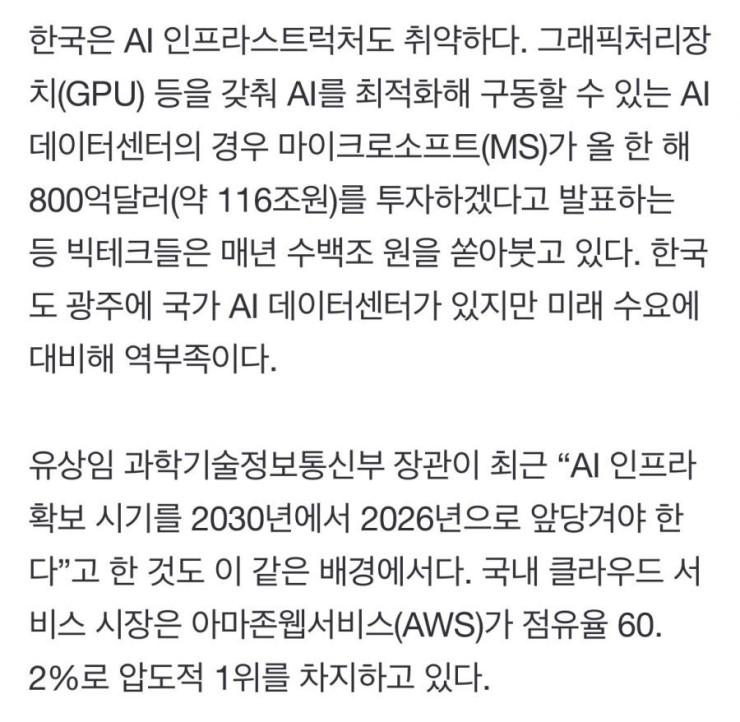 Ai 지각생 추락한 한국…IT 강국은 옛말