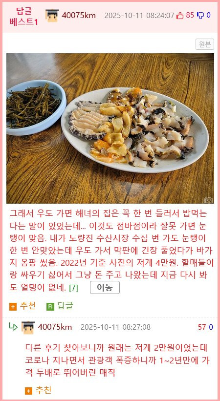 제주도사람 : 바다에서 건지고 며칠지난걸 먹는다고?
