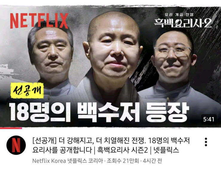 오늘 유튜브에 선공개된 흑백요리사2 댓글 근황
