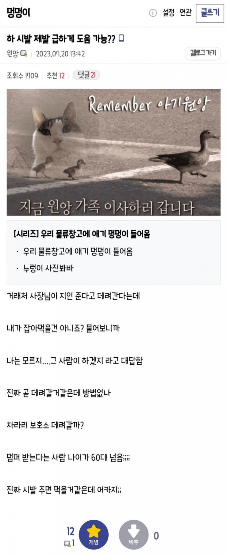 우리 회사 물류창고에 애기 멍멍이 들어옴