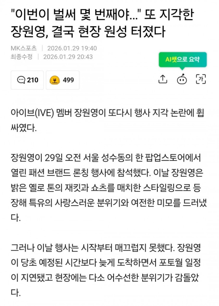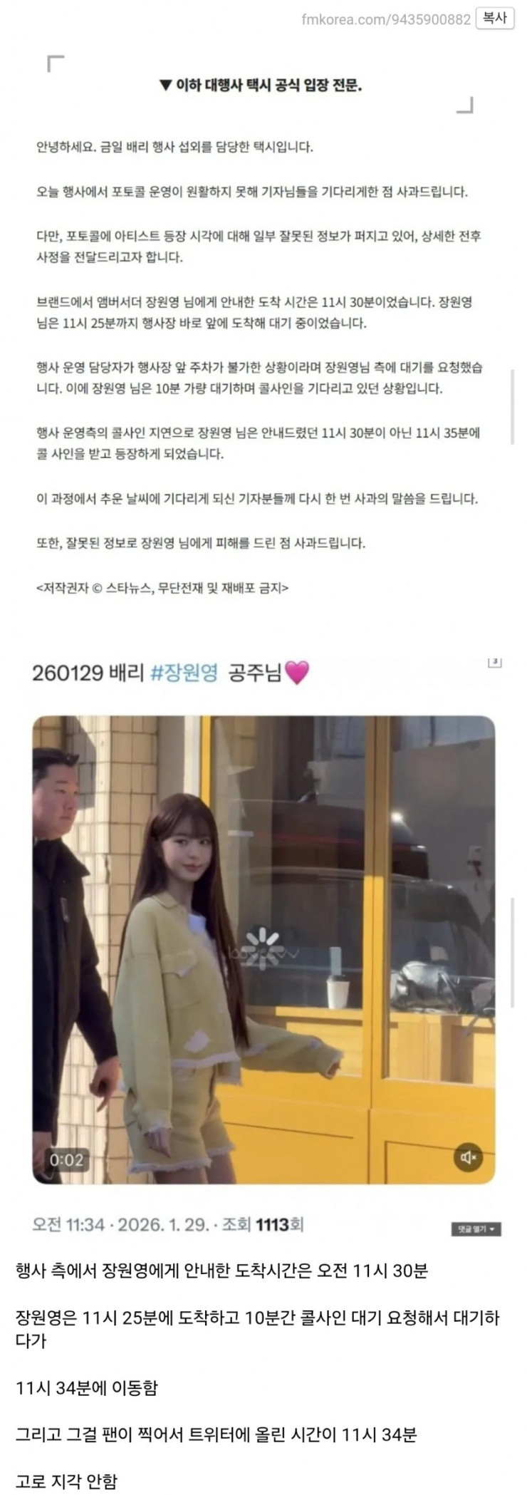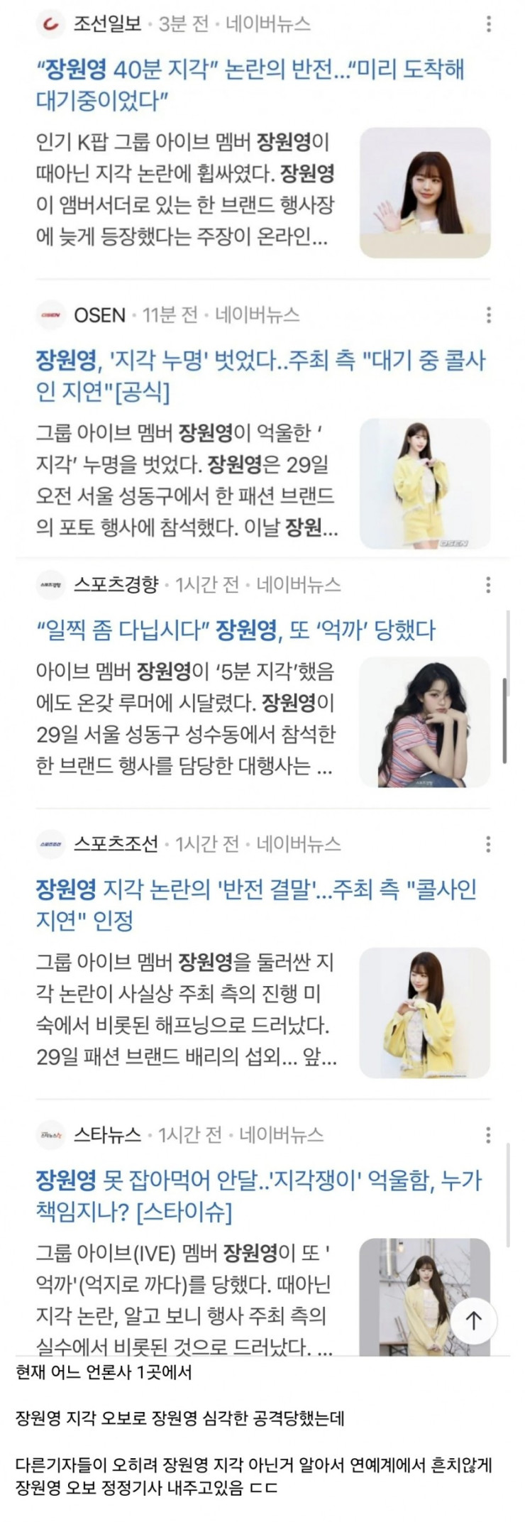 장원영 지각 기사의 억울함 풀어주는 기자들