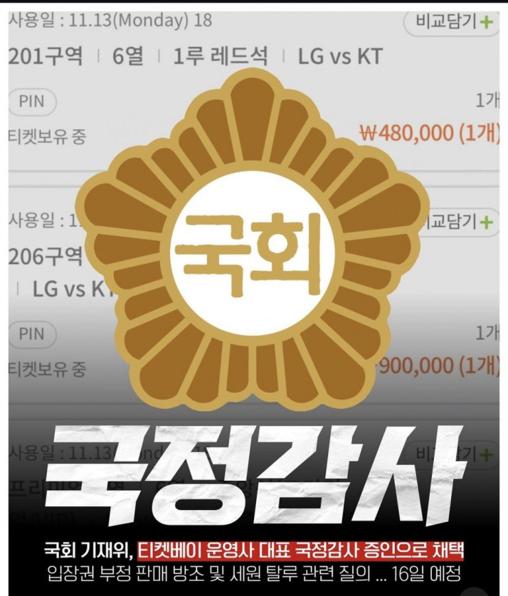 티켓베이 운영사 대표 국정감사 소환 ㄷㄷㄷ