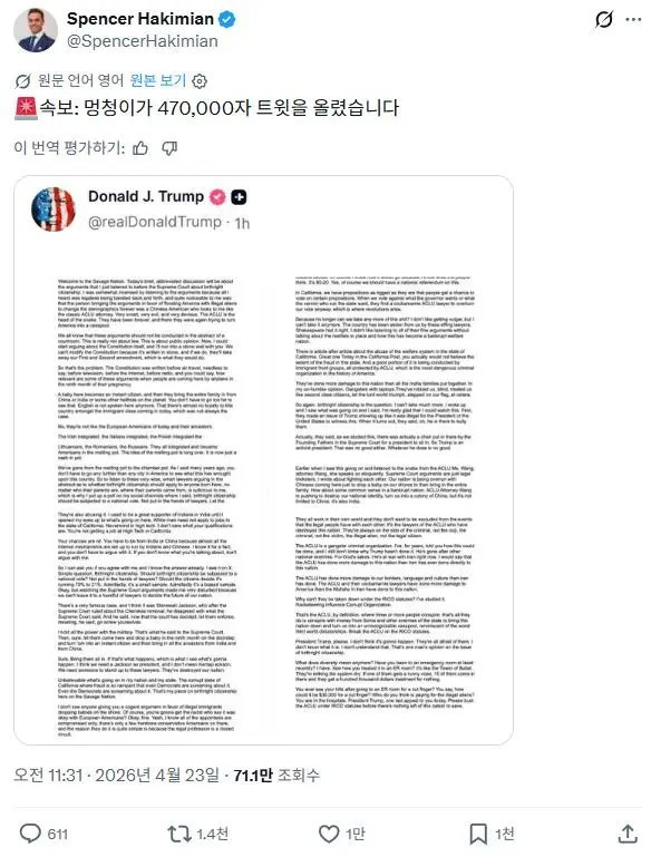 어떤 멍청이가47만자 짜리 트윗을 올렸다고 합니다.