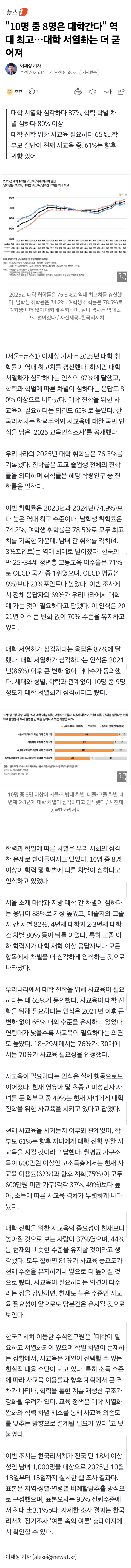 "10명 중 8명은 대학간다" 역대 최고…대학 서열화는 더 굳어져
