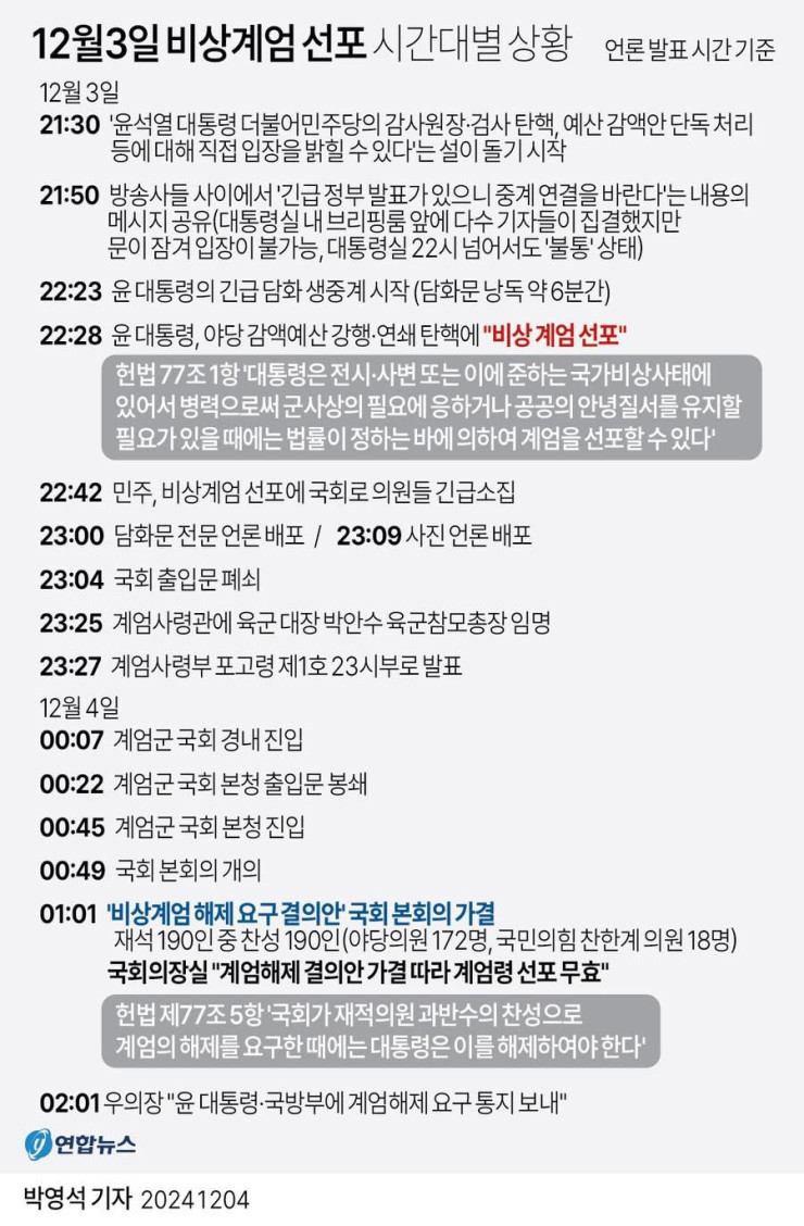 12월 3일 비상계엄 선포 시간대별 상황 타임라인