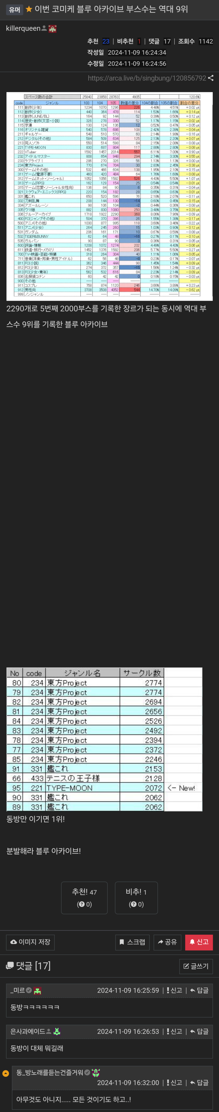 일본 코미케 역대 부스 수 1등부터 8등까지
