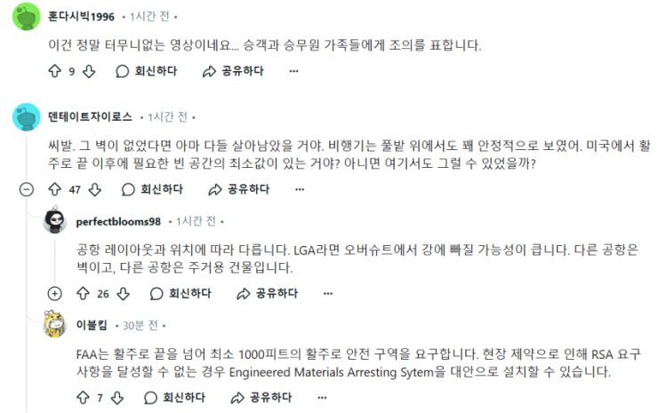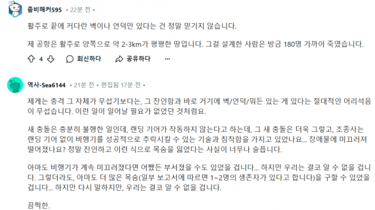 무안 항공기 추락영상을 본 레딧 일부 반응