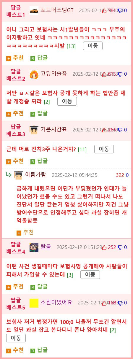 변명하다가 일상 배상 보험 접수해 줌