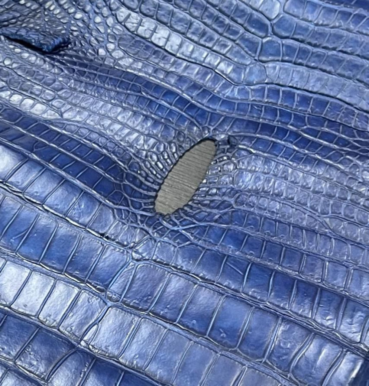 A : "아아, 저 구멍은 불량이 아니라 악어의 총배설강이 있던 자리입니다.