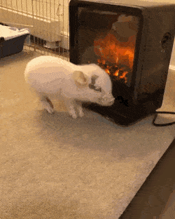 싱글벙글 추워서 난로 옆에 붙어 있는 아기 돼지