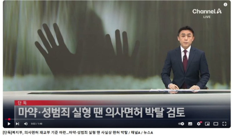 현재 마약, 성범죄 등의 강력 범죄를 저지른 의사에 대해서는