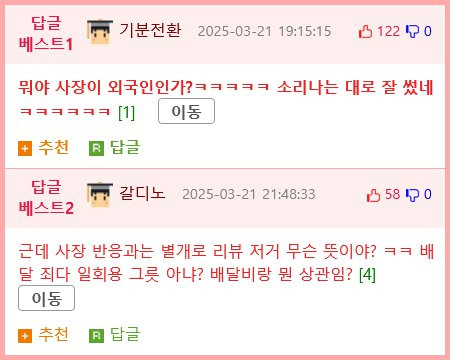 리뷰댓글에서 느꺼지는 사장님의 어이없음