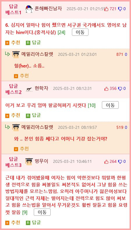 5. 여성의 전체적인 근력은 남성의 42.2%~62.8% 수준이라는 연구 결과가 있다.