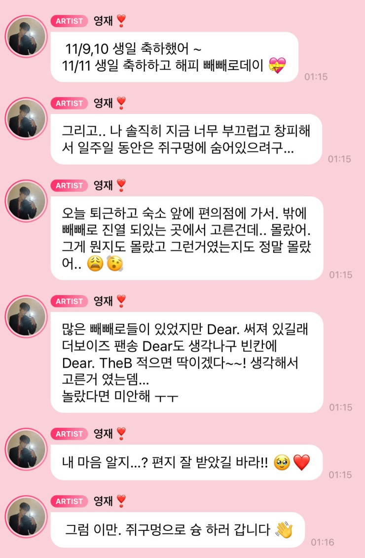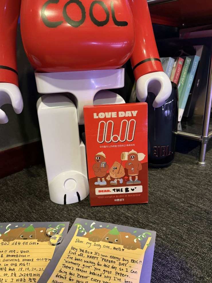 아이돌 더 보이즈 멤버 에릭이 팬들한테 고맙다고 편지 + 빼빼로 올렸는데 빼빼로가 아니라 콘돔.....