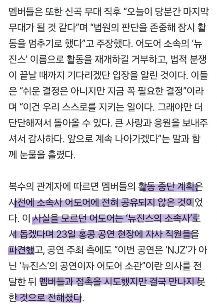뉴진스 홍콩에서 어도어 협의 거부하고 독단으로 진행