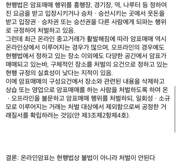 암표를 법적으로 잡거나 처벌할 수 없는 이유