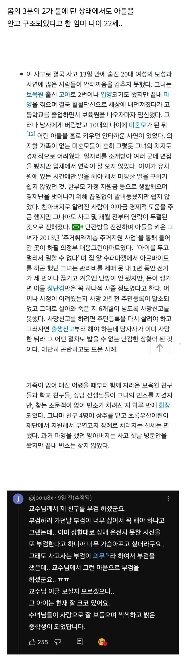 저 아파트 화재사건 기억나는데 저 분 사연은 진짜 너무 안타까웠습니다…ㅜㅜ