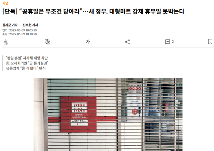 “공휴일은 무조건 닫아라”…대형마트 강제 휴무일 못박는다