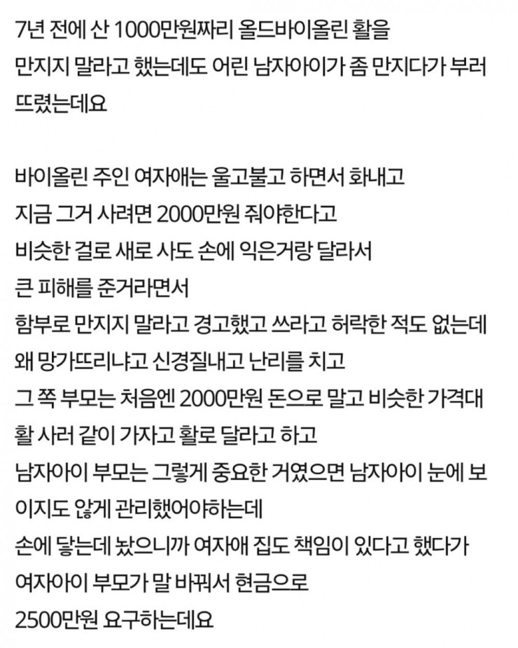 바이올린 실수로 망가뜨린 아이