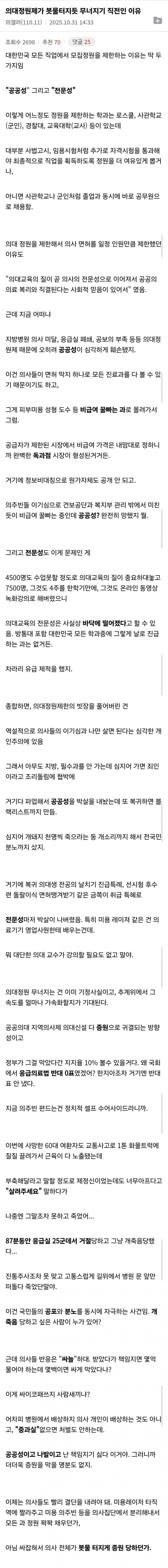의대정원제가 봇물터지듯 무너지기 직전인 이유.txt