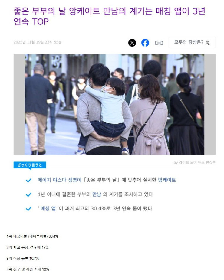 일본 부부들 만나게 된 계기 3년 연속 1위 데이트어플