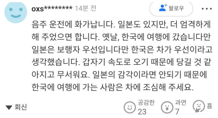일본사람 음주운전 사망사고 니폰 댓글 반응