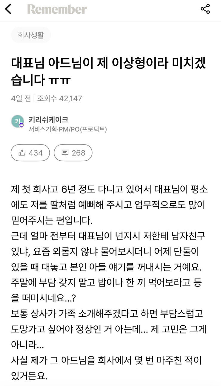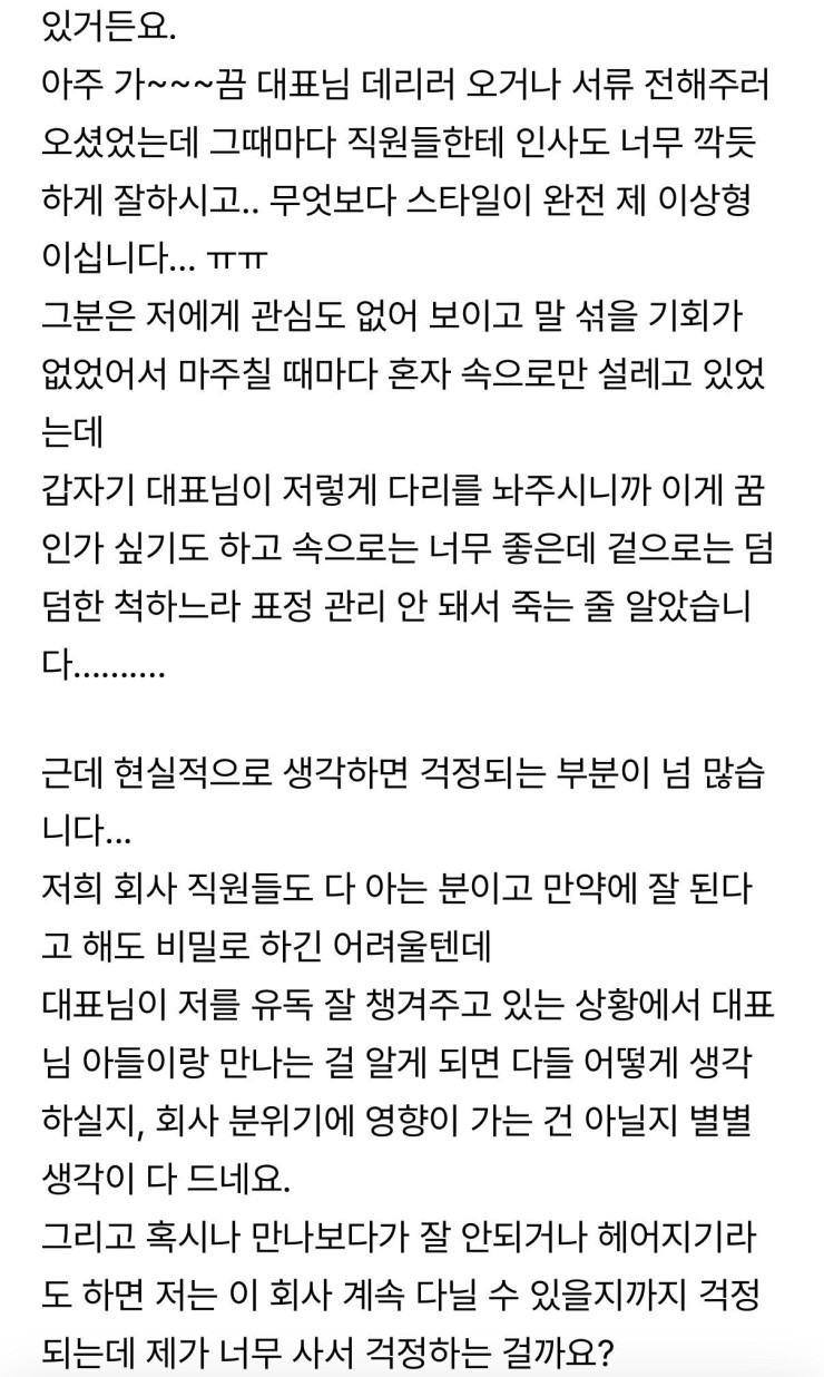 사장님 아들이 제 이상형이라 고민이라는 직장인