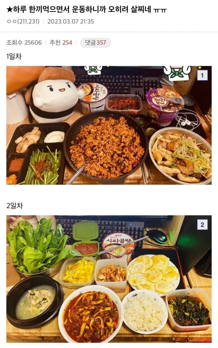 하루 한 끼 먹으면서 운동하는데 오히려 살찐다는 디시인