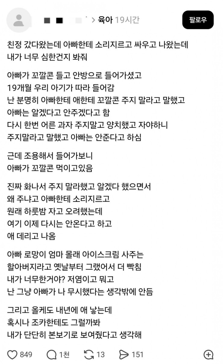 친정에서 아빠한테 싸우고 나왔는데 내가 너무 심한거?