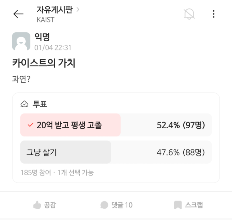 현찰 20억 vs 카이스트