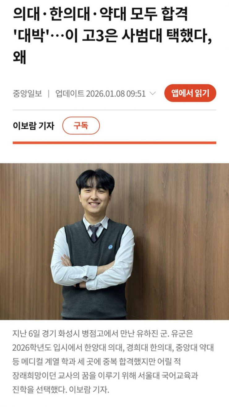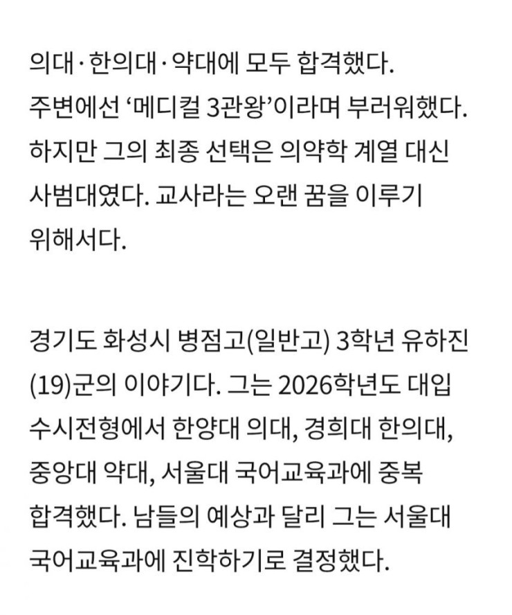 의대 대신에 사범대 선택한 고등학생