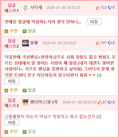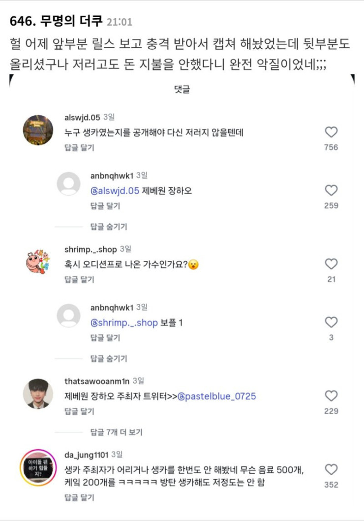 (더쿠출처에서 캡처한 댓글)
