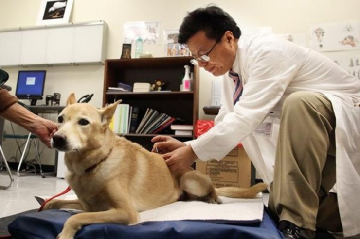 몸이 불편한 댕댕이를 위해 침술 놓는 병원