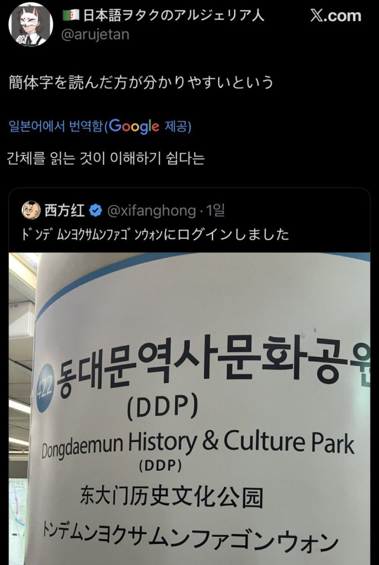 또 동대문역사문화공원역은 トンデムン·ヨクサムンファゴンウォン(돈대문요쿠사문후아곤원)으로 표기되어 있어서 길고 읽기 힘들기로 유명합니다. 그래서 이것도 중국어 간체 역명인 东大门历史文化公园으로 더 잘 알아보죠.