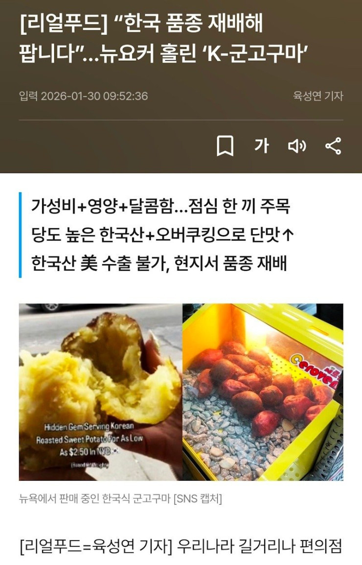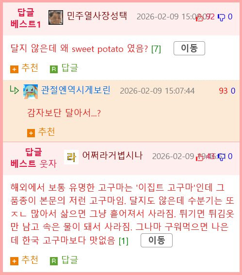 요리법이 아니라 한국고구마 품종 자체가 인기라함
